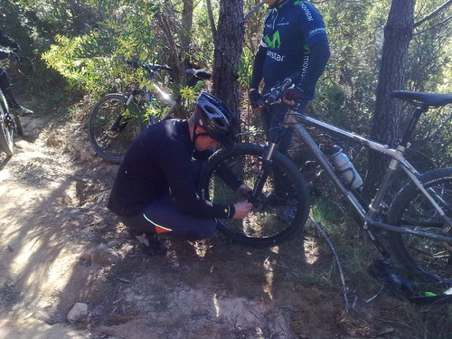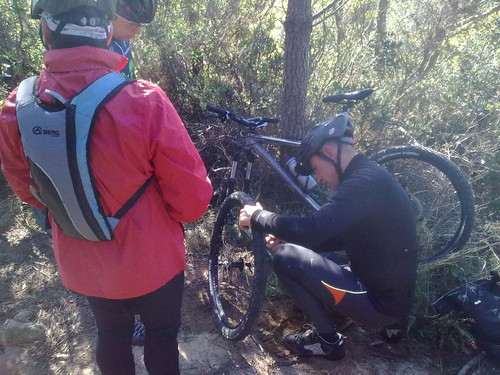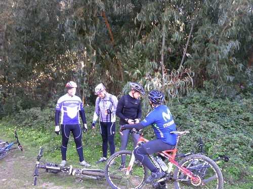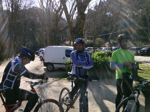 Temos pena....muitos foram aqueles que tiveram medo do frio, mas com uma manhã soalheira, os termómetros marcavam 6ºc ás 9 horas, o suficiente para curtir uma boa manhã......Arca de Noé recebe com gosto novos amigos do pedal....hoje com " frio????" juntaram-se 10 bttistas, "morde a lingua" tomou hoje o comando com um andamento estonteante," abençoado frio???" ou sei lá o quê....havia que pedalar para aquecer......mas sempre a rolar dirigimonos á zona da Ribeira, Barragem da Mula e Capuchos.......para o famoso abastecimento.....em descida por alguns trilhos menos usados....não poderia faltar um furo....nem era volta.....eheheh...Aguardamos a melhoria do tempo.......para as bikes não ganharem teias de aranha....